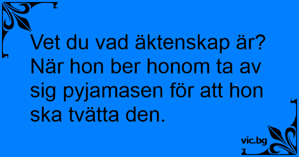Vet du vad äktenskap är? När hon ber honom ta av sig pyjamasen för att hon ska tvätta den.