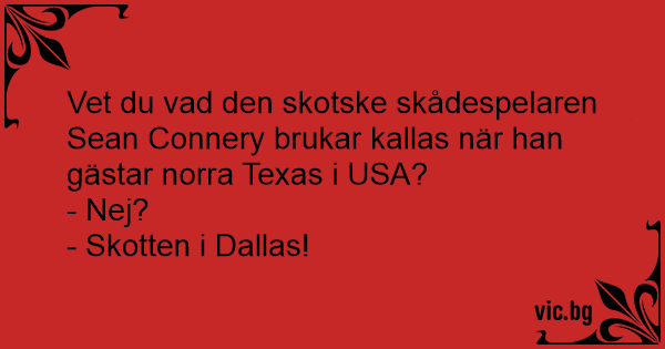Vet du vad den skotske skådespelaren Sean Connery brukar kallas när han gästar norra Texas i USA?