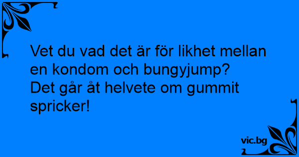 - Vet du vad det är för likhet mellan att hoppa bungyjump och att pippa en polsk hora? - Nä? - Om gummit spricker så är du dödens.