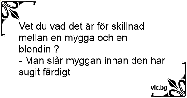 Hva er forskjellen på ei blondine og en mygg? - Blondinen fortsetter å suge dersom du klapser til henne..