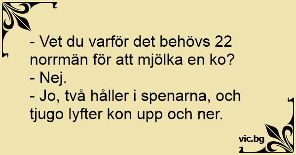 - Vet du varför det behövs 22 norrmän för att mjölka en ko?