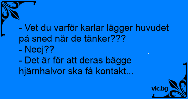 - Vet du varför karlar lägger huvudet på sned när de tänker???