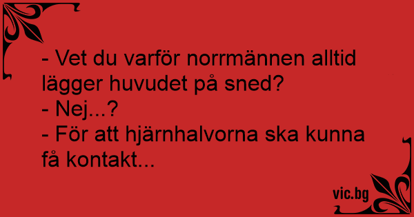 - Vet du varför norrmännen alltid lägger huvudet på sned?