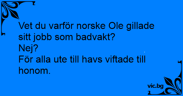 Vet du varför norske Ole gillade sitt jobb som badvakt?<br />Nej?<br />För alla ute till havs viftade till honom.
