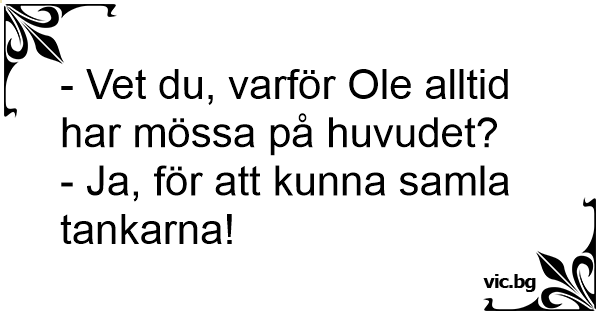 - Vet du, varför Ole alltid har mössa på huvudet?- Ja, för att kunna samla tankarna! 4 0 0 Norge skämt