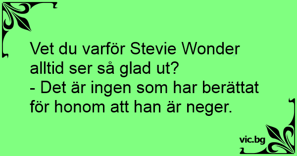 Waarom lacht Stevie Wonder de hele tijd? Omdat hij niet weet dat hij zwart is.
