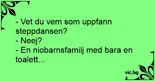 - Vet du vem som uppfann steppdansen?<br />- Neej?<br />- En niobarnsfamilj med bara en toalett...