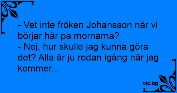 - Vet inte fröken Johansson när vi börjar här på mornarna?
