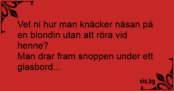 Vet ni hur man knäcker näsan på en blondin utan att röra vid henne?