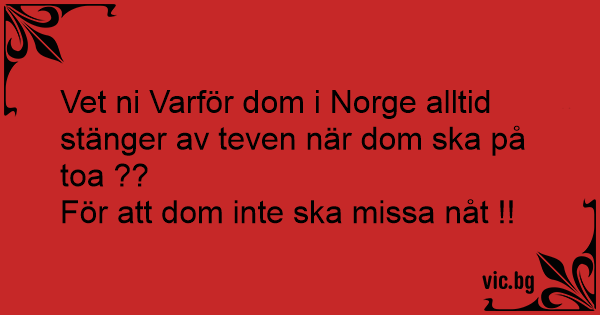 Vet ni Varför dom i Norge alltid stänger av teven när dom ska på toa ??