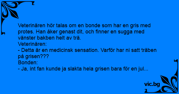 A farmer is walking with a prospective buyer when they see a beautiful pig in the yard, except it has a wooden leg. The buyer asks, "Why the wooden leg?" The farmer replies, "That pig is so smart,...