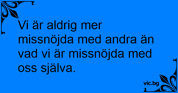 Vi är aldrig mer missnöjda med andra än vad vi är missnöjda med oss själva.