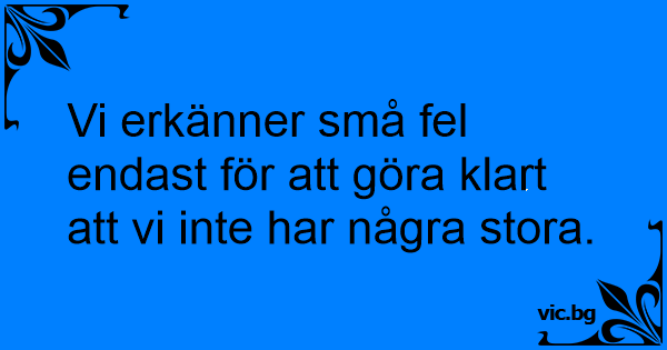Vi erkänner små fel endast för att göra klart att vi inte har några stora.