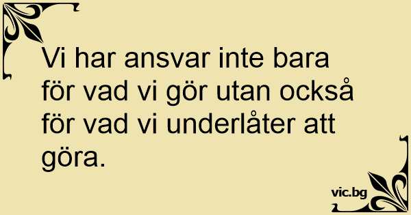 Vi har ansvar inte bara för vad vi gör utan också för vad vi underlåter att göra.