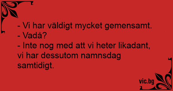 - Inte nog med att vi heter likadant, vi har dessutom namnsdag samtidigt.