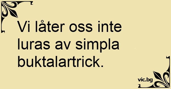 Vi låter oss inte luras av simpla buktalartrick.