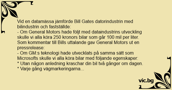Vid en datamässa jämförde Bill Gates datorindustrin med bilindustrin och fastställde: