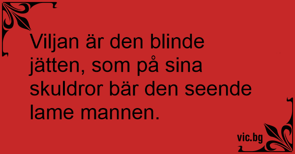 Viljan är den blinde jätten, som på sina skuldror bär den seende lame mannen.