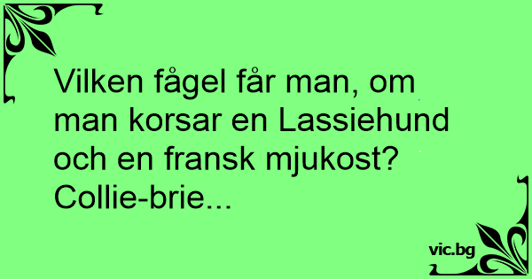 Vilken fågel får man, om man korsar en Lassiehund och en fransk mjukost?