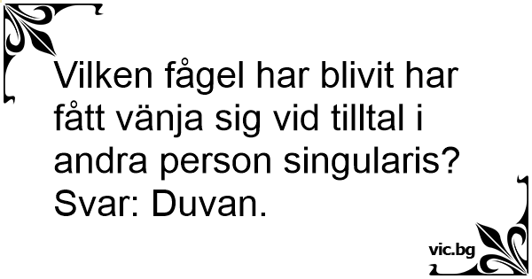 Vilken fågel har blivit har fått vänja sig vid tilltal i andra person singularis?