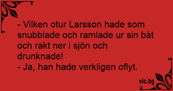 - Vilken otur Larsson hade som snubblade och ramlade ur sin båt och rakt ner i sjön och drunknade!