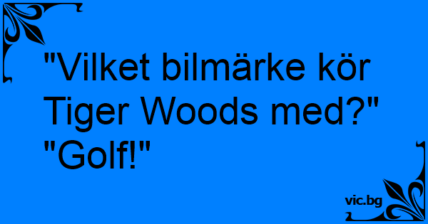 "Vilket bilmärke kör Tiger Woods med?"<br />"Golf!"
