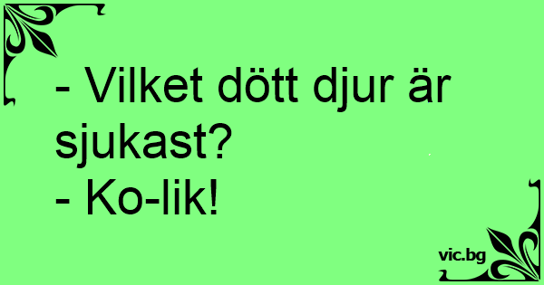 - Vilket dött djur är sjukast?<br />- Ko-lik!