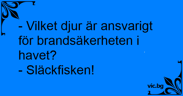 - Vilket djur är ansvarigt för brandsäkerheten i havet?<br />- Släckfisken!