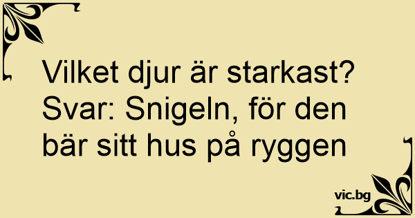Svar: Snigeln, för den bär sitt hus på ryggen