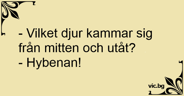 - Vilket djur kammar sig från mitten och utåt?<br />- Hybenan!