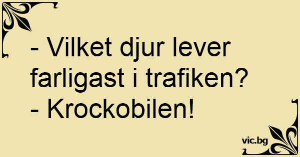 - Vilket djur lever farligast i trafiken?<br />- Krockobilen!