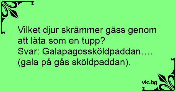 Svar: Galapagossköldpaddan…. (gala på gås sköldpaddan).