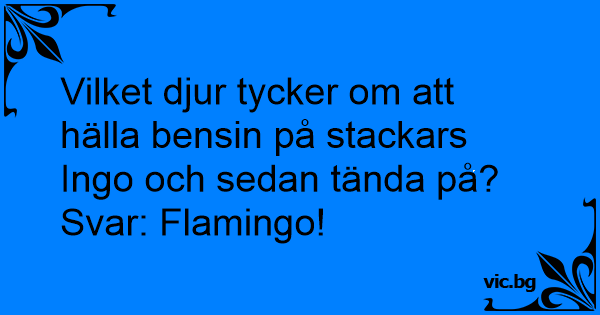 Vilket djur tycker om att hälla bensin på stackars Ingo och sedan tända på?