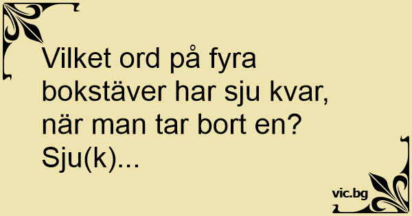Vilket ord på fyra bokstäver har sju kvar, när man tar bort en?