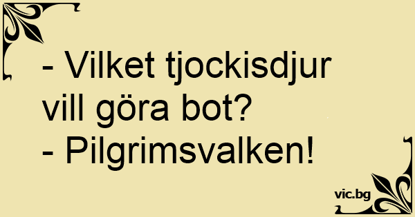 - Vilket tjockisdjur vill göra bot?<br />- Pilgrimsvalken!
