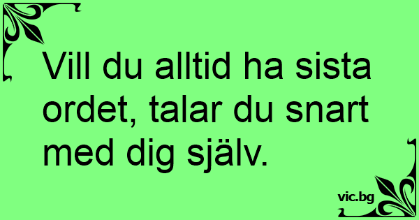 Vill du alltid ha sista ordet, talar du snart med dig själv.