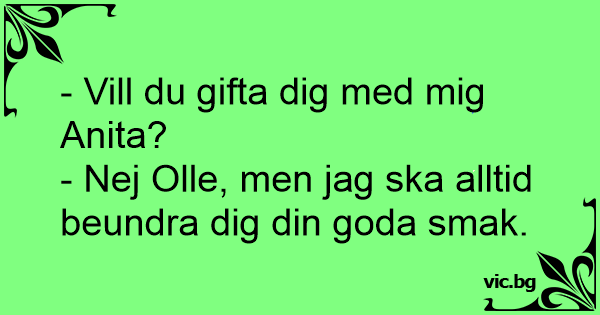 - Маро, ще се ожениш ли за мен? - Не Кире, но се възхищавам на добрият ти вкус