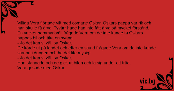 Villiga Vera flörtade vilt med osmarte Oskar. Oskars pappa var rik och han skulle få ärva. Tyvärr hade han inte fått ärva så mycket förstånd.