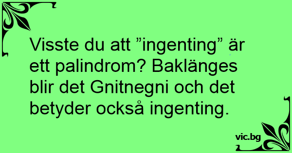 Visste du att ”ingenting” är ett palindrom? Baklänges blir det Gnitnegni och det betyder också ingenting.