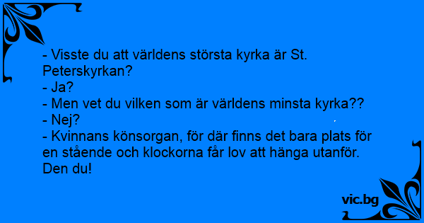 - Kvinnans könsorgan, för där finns det bara plats för en stående och klockorna får lov att hänga utanför. Den du!