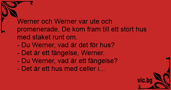 Werner och Werner var ute och promenerade. De kom fram till ett stort hus med staket runt om.