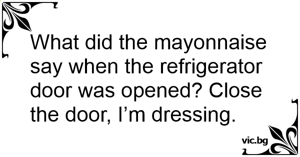 What did the mayonnaise say when the refrigerator door was opened? Close the door, I’m dressing.