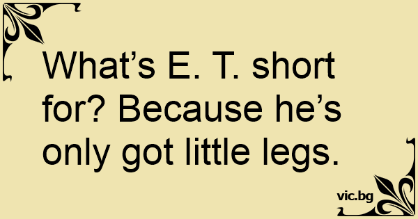 What’s E. T. short for? Because he’s only got little legs.