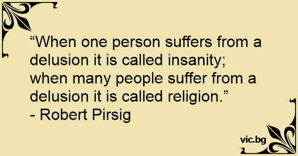 „Когато един човек страда от заблуда, това се нарича лудост; когато много хора страдат от заблуда, това се нарича религия.” - Робърт Пърсиг
