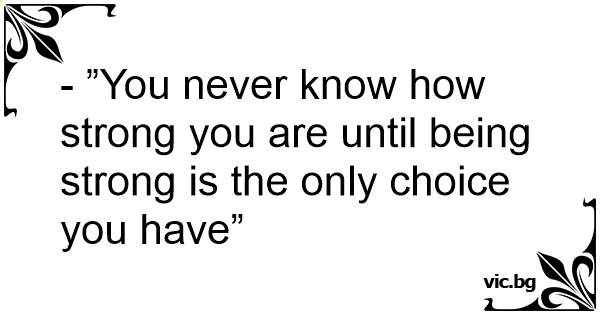 - ”You never know how strong you are until being strong is the only choice you have”