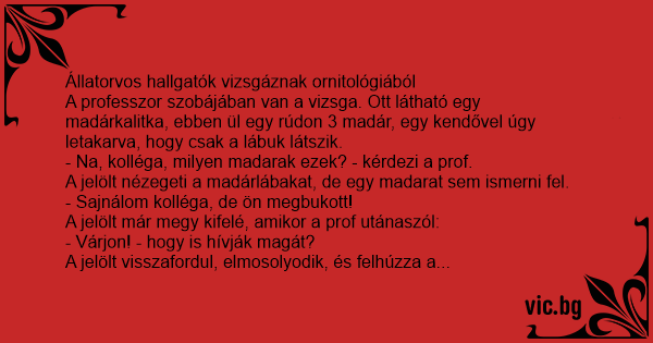 - Na, kolléga, milyen madarak ezek? - kérdezi a prof.