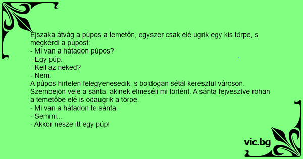 Éjszaka átvág a púpos a temetőn, egyszer csak elé ugrik egy kis törpe, s megkérdi a púpost: