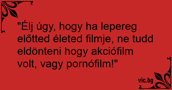 "Élj úgy, hogy ha lepereg előtted életed filmje, ne tudd eldönteni hogy akciófilm volt, vagy pornófilm!"