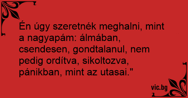 Én úgy szeretnék meghalni, mint a nagyapám: álmában, csendesen, gondtalanul, nem pedig ordítva, sikoltozva, pánikban, mint az utasai."