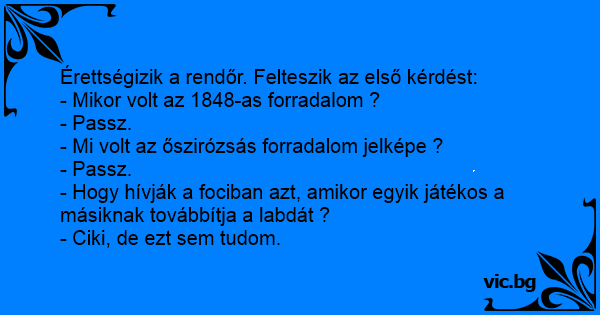Érettségizik a rendőr. Felteszik az első kérdést: